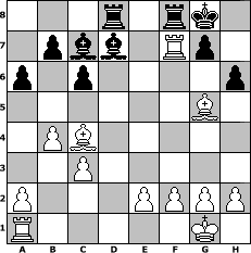 game notation in PGN-format [Event "Wargames-kill the King II"] [Site "www.myChess.de"] [Date "2005.11.18"] [Round "2"] [White "Baehr008"] [Black "nogumo"] [ECO "C42"] [WhitemyELO "1979"] [BlackmyELO "1815"] [Result "1-0"] [TimeControl "10/864000"] [WhiteDays "06"] [BlackDays "10"] [MyChessNo "19815"] 1. e4 e5 2. Nf3 Nf6 3. Nxe5 d6 4. Nf3 Nxe4 5. Nc3 Nxc3 6. dxc3 Be7 7. Bc4 O-O 8. O-O c6 9. Re1 d5 10. Bf1 Bg4 11. c4 dxc4 12. Qxd8 Bxd8 13. Ne5 Bf5 14. Bxc4 Ba5 15. c3 Nd7 16. Nxd7 Bxd7 17. Re7 Rad8 18. Be3 a6 19. b4 Bc7 20. Bg5 h6 21. Rxf7 1-0 position notation in FEN-format 3r1rk1/1pbb1Rp1/p1p4p/6B1/1PB5/2P5/P3PPPP/R5K1 - - - 0 21 Captured white pieces: ![]() ![]() ![]() ![]() ![]() ![]() ![]() ![]() ![]() ![]() ![]() ![]() ![]() ![]() ![]() Captured black pieces: ![]() ![]() ![]() ![]() ![]() ![]() ![]() ![]() ![]() ![]() ![]() ![]() ![]() ![]() ![]() Click on a captured piece in order to display the desired move!