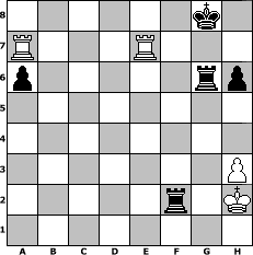 game notation in PGN-format [Event "Wildes Gemetzel Teil 3 oder Over2000"] [Site "www.myChess.de"] [Date "2006.02.20"] [Round "1"] [White "bjeu"] [Black "Dragonwolves"] [ECO "C50"] [WhitemyELO "2115"] [BlackmyELO "2113"] [Result "1/2-1/2"] [TimeControl "10/2592000"] [WhiteDays "29"] [BlackDays "30"] [MyChessNo "22696"] 1. e4 e5 2. Nf3 Nc6 3. Bc4 Bc5 4. d3 d6 5. c3 Nf6 6. O-O O-O 7. b4 Bb6 8. Bg5 h6 9. Bh4 Qe7 10. Nbd2 Bg4 11. h3 Be6 12. a4 a6 13. Qe2 Ba7 14. Rfe1 Bxc4 15. Nxc4 Qe6 16. b5 Ne7 17. d4 Ng6 18. d5 Qe7 19. bxa6 bxa6 20. Na5 Nxh4 21. Nxh4 Nxd5 22. Nf5 Qg5 23. Nxh6+ gxh6 24. exd5 Kh8 25. Kh1 Rg8 26. Rg1 Qh4 27. Ra2 e4 28. Nc6 Bc5 29. Kh2 Rae8 30. g3 Qg5 31. Qc4 e3 32. Nd4 Re4 33. Rg2 Rh4 34. Rg1 Rh5 35. fxe3 Qxe3 36. Rag2 Bxd4 37. cxd4 Rg4 38. Qc1 Qf3 39. Rf1 Qxd5 40. Rgf2 Qxd4 41. Qxc7 Rxg3 42. Qd8+ Rg8 43. Qf6+ Qxf6 44. Rxf6 Rh4 45. Rxd6 Rg6 46. Rd8+ Kg7 47. Rd7 Rxa4 48. Rfxf7+ Kg8 49. Rfe7 Ra2+ 50. Kh1 Rf2 51. Ra7 Rf1+ 52. Kh2 Rf2+ 1/2-1/2 position notation in FEN-format 6k1/R3R3/p5rp/8/8/7P/5r1K/8 - - - 9 53 Captured white pieces: Captured black pieces: Click on a captured piece in order to display the desired move!