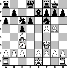 game notation in PGN-format [Event "Wrixum - Open die IX"] [Site "www.myChess.de"] [Date "2011.10.15"] [Round "1"] [White "ChessFan98"] [Black "Seneca"] [ECO "C41"] [WhitemyELO "1500"] [BlackmyELO "1476"] [Result "0-1"] [TimeControl "10/2592000"] [WhiteDays "00"] [BlackDays "38"] [MyChessNo "76882"] 1. e4 e5 2. Nf3 d6 3. d4 exd4 4. Nxd4 Nf6 5. Nc3 Be7 6. Bc4 a6 7. Bg5 c5 8. Nf5 Bxf5 9. exf5 O-O 10. Qf3 Nc6 0-1 position notation in FEN-format r2q1rk1/1p2bppp/p1np1n2/2p2PB1/2B5/2N2Q2/PPP1PPPP/R3K2R - KQ - 3 11 Captured white pieces: ![]() ![]() ![]() ![]() ![]() ![]() ![]() ![]() ![]() ![]() ![]() ![]() ![]() ![]() ![]() Captured black pieces: ![]() ![]() ![]() ![]() ![]() ![]() ![]() ![]() ![]() ![]() ![]() ![]() ![]() ![]() ![]() Click on a captured piece in order to display the desired move!