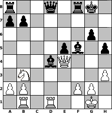 game notation in PGN-format [Event "2016"] [Site "www.myChess.de"] [Date "2016.01.01"] [Round "1"] [White "Andylein1989"] [Black "nyffhans"] [ECO "B34"] [WhitemyELO "1497"] [BlackmyELO "1939"] [Result "0-1"] [TimeControl "10/2592000"] [WhiteDays "27"] [BlackDays "30"] [MyChessNo "101911"] 1. e4 c5 2. Nf3 Nc6 3. d4 cxd4 4. Nxd4 g6 5. Be2 Bg7 6. c3 Nf6 7. Bf3 O-O 8. O-O Ne5 9. Bf4 Nxf3+ 10. Qxf3 d6 11. Nd2 e5 12. Bg5 exd4 13. cxd4 h6 14. Be3 Ng4 15. Bf4 Bxd4 16. Rab1 h5 17. h3 Ne5 18. Bxe5 dxe5 19. Rfd1 f5 20. Nb3 fxe4 21. Qxe4 Bf5 0-1 position notation in FEN-format r2q1rk1/pp6/6p1/4pb1p/3bQ3/1N5P/PP3PP1/1R1R2K1 - - - 1 22 Captured white pieces: Captured black pieces: Click on a captured piece in order to display the desired move!