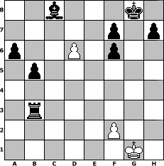 game notation in PGN-format [Event "QGD: Orthodox Verteidigung"] [Site "www.myChess.de"] [Date "2008.08.11"] [Round "1"] [White "Steppenwolf"] [Black "Knight"] [ECO "D64"] [WhitemyELO "1180"] [BlackmyELO "1234"] [Result "0-1"] [TimeControl "10/2592000"] [WhiteDays "083"] [BlackDays "116"] [MyChessNo "47041"] 1. d4 d5 2. c4 e6 3. Nc3 Nf6 4. Bg5 Be7 5. e3 O-O 6. Nf3 Nbd7 7. Rc1 c6 8. Qc2 a6 9. b3 b5 10. cxd5 exd5 11. Bxf6 Nxf6 12. e4 Bb4 13. Bd3 Re8 14. O-O Bxc3 15. Qxc3 dxe4 16. Qxc6 Bd7 17. Qc5 exd3 18. Rfe1 Rxe1+ 19. Rxe1 Rc8 20. Qe7 Qxe7 21. Rxe7 Rc2 22. h3 d2 23. Nxd2 Rxd2 24. d5 Rxa2 25. d6 Rb2 26. Re3 Nd5 27. Rd3 Nf6 28. Rc3 Ne4 29. Rc7 Nf6 30. g4 Rxb3 31. g5 Bxh3 32. Rc8+ Bxc8 33. gxf6 gxf6 0-1 position notation in FEN-format 2b3k1/5p1p/p2P1p2/1p6/8/1r6/5P2/6K1 - - - 0 34 Captured white pieces: ![]() ![]() ![]() ![]() ![]() ![]() ![]() ![]() ![]() ![]() ![]() ![]() ![]() ![]() ![]() Captured black pieces: ![]() ![]() ![]() ![]() ![]() ![]() ![]() ![]() ![]() ![]() ![]() ![]() ![]() ![]() ![]() Click on a captured piece in order to display the desired move!