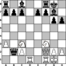 game notation in PGN-format [Event "Emil-Josef Diemer"] [Site "www.myChess.de"] [Date "2017.09.06"] [Round "1"] [White "Steffi"] [Black "lisama"] [ECO "D00"] [WhitemyELO "1563"] [BlackmyELO "1502"] [Result "0-1"] [TimeControl "10/2592000"] [WhiteDays "50"] [BlackDays "58"] [MyChessNo "109506"] 1. d4 d5 2. e4 dxe4 3. Nc3 Nf6 4. f3 exf3 5. Nxf3 g6 6. Be2 Bg7 7. O-O O-O 8. Bg5 h6 9. Bh4 Nc6 10. a3 Ng4 11. Qd2 Nxd4 12. Rad1 Qd6 13. Bg3 Nxe2+ 14. Qxe2 Qb6+ 15. Bf2 Nxf2 16. Qxf2 Qxb2 0-1 position notation in FEN-format r1b2rk1/ppp1ppb1/6pp/8/8/P1N2N2/1qP2QPP/3R1RK1 - - - 0 17 Captured white pieces: Captured black pieces: Click on a captured piece in order to display the desired move!
