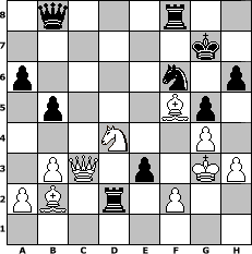 game notation in PGN-format [Event "Der HSF feiert 3.Geburtstag-feiert gern mit!"] [Site "www.myChess.de"] [Date "2013.05.01"] [Round "1"] [White "espero"] [Black "Rotstift10"] [ECO "B20"] [WhitemyELO "1766"] [BlackmyELO "1611"] [Result "0-1"] [TimeControl "10/2592000"] [WhiteDays "30"] [BlackDays "30"] [MyChessNo "88096"] 1. e4 c5 2. d4 e6 3. d5 exd5 4. exd5 d6 5. Nf3 Nf6 6. c4 Bg4 7. Be2 Bxf3 8. Bxf3 Be7 9. O-O h6 10. Nc3 a6 11. Re1 O-O 12. Bf4 Nh7 13. Rxe7 Qxe7 14. Qd2 g5 15. Re1 Qd8 16. Bg3 f5 17. h3 f4 18. Bh2 Nd7 19. Bg4 Ne5 20. Be6+ Kg7 21. Rxe5 dxe5 22. Ne4 Nf6 23. Nxc5 Qc7 24. Nd3 e4 25. Nxf4 Qxc4 26. Ne2 Qd3 27. Qe1 Nxd5 28. Be5+ Kg6 29. Nc1 Qc4 30. b3 Qb4 31. Qd1 Nf6 32. g4 Rad8 33. Bf5+ Kf7 34. Qc2 Qe7 35. Qc4+ Kg7 36. Bb2 e3 37. Ne2 b5 38. Qc3 Rd1+ 39. Kg2 Rd2 40. Nd4 Qb7+ 41. Kg3 Qb8+ 0-1 position notation in FEN-format 1q3r2/6k1/p4n1p/1p3Bp1/3N2P1/1PQ1p1KP/PB1r1P2/8 - - - 8 42 Captured white pieces: ![]() ![]() ![]() ![]() ![]() ![]() ![]() ![]() ![]() ![]() ![]() ![]() ![]() ![]() ![]() Captured black pieces: ![]() ![]() ![]() ![]() ![]() ![]() ![]() ![]() ![]() ![]() ![]() ![]() ![]() ![]() ![]() Click on a captured piece in order to display the desired move!