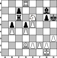 game notation in PGN-format [Event "Die letzten Sommertage!!!"] [Site "www.myChess.de"] [Date "2009.09.12"] [Round "1"] [White "brucybabe"] [Black "Knight"] [ECO "C70"] [WhitemyELO "1625"] [BlackmyELO "1181"] [Result "1-0"] [TimeControl "10/864000"] [WhiteDays "39"] [BlackDays "37"] [MyChessNo "58919"] 1. e4 e5 2. Nf3 Nc6 3. Bb5 a6 4. Ba4 b5 5. Bb3 h6 6. c3 Bb7 7. O-O Nf6 8. Bc2 Bd6 9. a3 O-O 10. d4 exd4 11. cxd4 Nh7 12. e5 Be7 13. Qd3 g6 14. Bxh6 Re8 15. Bd2 d5 16. Re1 Bf8 17. Bc3 Bg7 18. Nbd2 Re6 19. Nb3 Re8 20. Nc5 Bc8 21. h3 Bf5 22. Qd2 Bxc2 23. Qxc2 a5 24. b4 axb4 25. axb4 Rxa1 26. Rxa1 Nf8 27. Bd2 Ne6 28. Nxe6 Rxe6 29. Qc5 Re8 30. Qxc6 Re6 31. Ra8 Rxc6 32. Rxd8+ Kh7 33. Ng5+ Kh6 34. Nxf7+ Kh7 35. Ng5+ Kh6 36. Ne6+ 1-0 position notation in FEN-format 3R4/2p3b1/2r1N1pk/1p1pP3/1P1P4/7P/3BPPP1/6K1 - - - 4 36 Captured white pieces: ![]() ![]() ![]() ![]() ![]() ![]() ![]() ![]() ![]() ![]() ![]() ![]() ![]() ![]() ![]() Captured black pieces: ![]() ![]() ![]() ![]() ![]() ![]() ![]() ![]() ![]() ![]() ![]() ![]() ![]() ![]() ![]() Click on a captured piece in order to display the desired move!