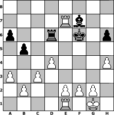 game notation in PGN-format [Event "Einheit in Vielfalt"] [Site "www.myChess.de"] [Date "2012.06.24"] [Round "1"] [White "bawcer"] [Black "Vahl1"] [ECO "B30"] [WhitemyELO "1470"] [BlackmyELO "1667"] [Result "1-0"] [TimeControl "10/2592000"] [WhiteDays "25"] [BlackDays "26"] [MyChessNo "82451"] 1. e4 c5 2. Nf3 Nc6 3. Nc3 e5 4. Bb5 Nge7 5. d3 h6 6. Be3 a6 7. Bxc6 Nxc6 8. a3 d6 9. h3 Be6 10. Qd2 Be7 11. O-O b5 12. Nd5 f5 13. Nxe7 Nxe7 14. Rfe1 f4 15. Bxf4 exf4 16. Qxf4 Ng6 17. Qg3 Rb8 18. Qxg6+ Ke7 19. Qxg7+ Bf7 20. Nh4 Ke6 21. Qg4+ Ke7 22. Ng6+ Kf6 23. Qf5+ Kg7 24. Nxh8 Qxh8 25. e5 dxe5 26. Qxe5+ Kg6 27. Qd6+ Kh7 28. Qxc5 Qf6 29. Qe5 Rb6 30. Qxf6 Rxf6 31. Re7 Kg6 32. Re1 Rc6 33. c3 Rd6 34. d4 Kf6 35. h4 1-0 position notation in FEN-format 8/4Rb2/p2r1k1p/1p6/3P3P/P1P5/1P2PPP1/4R1K1 - - - 0 35 Captured white pieces: ![]() ![]() ![]() ![]() ![]() ![]() ![]() ![]() ![]() ![]() ![]() ![]() ![]() ![]() ![]() Captured black pieces: ![]() ![]() ![]() ![]() ![]() ![]() ![]() ![]() ![]() ![]() ![]() ![]() ![]() ![]() ![]() Click on a captured piece in order to display the desired move!
