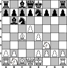 game notation in PGN-format [Event "Wanderpokal November 2006"] [Site "www.myChess.de"] [Date "2006.11.11"] [Round "1"] [White "Juliette2103"] [Black "Andylein1989"] [ECO "C53"] [WhitemyELO "1677"] [BlackmyELO "1442"] [Result "1-0"] [TimeControl "10/864000"] [WhiteDays "07"] [BlackDays "08"] [MyChessNo "29965"] 1. e4 e5 2. Nf3 Nc6 3. Bc4 Bc5 4. c3 Nge7 5. d4 exd4 6. cxd4 Bb6 7. d5 1-0 position notation in FEN-format r1bqk2r/ppppnppp/1bn5/3P4/2B1P3/5N2/PP2PPPP/RNBQK2R - KQkq - 0 7 Captured white pieces: Captured black pieces: Click on a captured piece in order to display the desired move!
