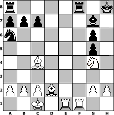 game notation in PGN-format [Event "Internetmeisterschaft Sfr. Heimersheim 2008"] [Site "www.myChess.de"] [Date "2008.03.05"] [Round "1"] [White "paula"] [Black "Press@"] [ECO "A82"] [WhitemyELO "1718"] [BlackmyELO "1500"] [Result "1-0"] [TimeControl "10/2592000"] [WhiteDays "36"] [BlackDays "40"] [MyChessNo "43134"] 1. d4 f5 2. e4 fxe4 3. Nc3 Nf6 4. f3 exf3 5. Nxf3 g6 6. Bf4 Bg7 7. Qd2 e6 8. O-O-O O-O 9. d5 d6 10. dxe6 Bxe6 11. Ng5 Bg4 12. Bc4+ Kh8 13. Rde1 d5 14. Nxd5 Na6 15. Rhf1 h6 16. Nxf6 Qxd2+ 17. Bxd2 hxg5 18. Nxg4 1-0 position notation in FEN-format r4r1k/ppp3b1/n5p1/6p1/2B3N1/8/PPPB2PP/2K1RR2 - - - 0 18 Captured white pieces: ![]() ![]() ![]() ![]() ![]() ![]() ![]() ![]() ![]() ![]() ![]() ![]() ![]() ![]() ![]() Captured black pieces: ![]() ![]() ![]() ![]() ![]() ![]() ![]() ![]() ![]() ![]() ![]() ![]() ![]() ![]() ![]() Click on a captured piece in order to display the desired move!