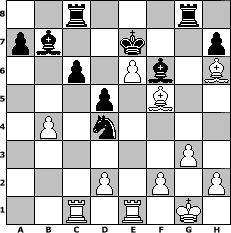 game notation in PGN-format [Event "fr"] [Site "www.myChess.de"] [Date "2011.10.14"] [Round "1"] [White "martinus"] [Black "HenrySchinasky"] [ECO "A80"] [WhitemyELO "1751"] [BlackmyELO "2099"] [Result "0-1"] [TimeControl "10/1728000"] [WhiteDays "13"] [BlackDays "20"] [MyChessNo "76822"] 1. d4 f5 2. Nf3 Nf6 3. g3 g6 4. Bg2 Bg7 5. O-O d6 6. Nc3 c6 7. Re1 d5 8. Bf4 O-O 9. Qd3 Ne4 10. a3 Nd7 11. Ng5 e5 12. Ne6 Ndc5 13. Nxd8 Nxd3 14. cxd3 Nxc3 15. dxe5 Nb5 16. Nxc6 bxc6 17. Rac1 Bb7 18. e4 Rac8 19. exf5 gxf5 20. b4 Nxa3 21. d4 Kf7 22. e6+ Ke7 23. Bg5+ Bf6 24. Bh6 Rg8 25. Bh3 Nb5 26. Bxf5 Nxd4 0-1 position notation in FEN-format 2r3r1/pb2k2p/2p1Pb1B/3p1B2/1P1n4/6P1/3P1P1P/2R1R1K1 - - - 0 27 Captured white pieces: Captured black pieces: Click on a captured piece in order to display the desired move!