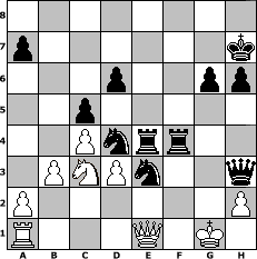 15. Bf3 Bd4 16. Bxd4 Ncxd4 17. Be4 Qh4 18. Bxb7 Rae8 19. Be4 Ne3 20. Qe1 Qxh3