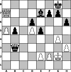 game notation in PGN-format [Event "Herbstturnier bis 1600"] [Site "www.myChess.de"] [Date "2025.10.14"] [Round "1"] [White "skuehnel"] [Black "Campino1986"] [ECO "C41"] [WhitemyELO "1373"] [BlackmyELO "1558"] [Result "*"] [TimeControl "10/2592000"] [WhiteDays "108"] [BlackDays "104"] [MyChessNo "133748"] 1. e4 e5 2. Nf3 d6 3. Bc4 Nf6 4. Nc3 Bg4 5. O-O Nbd7 6. d3 Be7 7. h3 Bxf3 8. Qxf3 Nb6 9. Bb3 O-O 10. Be3 c6 11. a4 c5 12. a5 Nbd7 13. Nd5 h6 14. g4 Rb8 15. c3 Nxd5 16. Bxd5 Nf6 17. Bc4 Qd7 18. b4 b5 19. Bb3 cxb4 20. cxb4 Rbc8 21. Rac1 Rc7 22. Rxc7 Qxc7 23. Rc1 Qd7 24. d4 Rc8 25. d5 Rxc1+ 26. Bxc1 Qc7 27. Qe3 Nxe4 28. Qxe4 Qxc1+ 29. Kg2 Qd2 30. Qe3 Qxb4 31. Qxa7 Qxb3 * position notation in FEN-format 6k1/Q3bpp1/3p3p/Pp1Pp3/6P1/1q5P/4PPK1/8 w - - 0 32 Captured white pieces: Captured black pieces: Click on a captured piece in order to display the desired move!