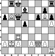 game notation in PGN-format [Event "F"] [Site "www.myChess.de"] [Date "2017.08.16"] [Round "1"] [White "jeremyt"] [Black "miu"] [ECO "C11"] [WhitemyELO "2142"] [BlackmyELO "1515"] [Result "1-0"] [TimeControl "10/2592000"] [WhiteDays "101"] [BlackDays "113"] [MyChessNo "109185"] 1. e4 e6 2. d4 d5 3. Nc3 Nf6 4. e5 Nfd7 5. f4 c5 6. Nf3 cxd4 7. Nxd4 a6 8. Qg4 Nc6 9. Be3 Ncxe5 10. fxe5 Nxe5 11. Qg3 Ng6 12. Qf2 Bb4 13. O-O-O Bxc3 14. bxc3 Qa5 15. Kb2 Bd7 16. Nb3 Qc7 17. Bb6 Qc6 18. Na5 Qc8 19. h4 Ne7 20. Bd3 Nc6 21. h5 h6 22. Nxc6 Qxc6 23. Bd4 f6 24. Bg6+ Ke7 25. Bc5+ Kd8 26. c4 b6 27. Bxb6+ Kc8 28. cxd5 exd5 29. Rd3 Rb8 30. Rc3 1-0 position notation in FEN-format 1rk4r/3b2p1/pBq2pBp/3p3P/8/2R5/PKP1PQP1/7R - - - 3 30 Captured white pieces: Captured black pieces: Click on a captured piece in order to display the desired move!
