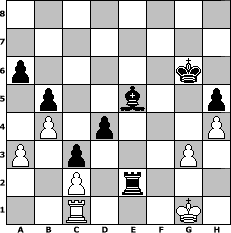 game notation in PGN-format [Event "Eine zentrale Er"] [Site "www.myChess.de"] [Date "2009.05.20"] [Round "2"] [White "Knight"] [Black "sel"] [ECO "C60"] [WhitemyELO "1098"] [BlackmyELO "1325"] [Result "0-1"] [TimeControl "10/2592000"] [WhiteDays "117"] [BlackDays "120"] [MyChessNo "55936"] 1. e4 e5 2. Nf3 Nc6 3. Bb5 Nge7 4. O-O a6 5. Ba4 b5 6. Bb3 h6 7. a3 Bb7 8. d3 Ng6 9. Nc3 Nd4 10. Nxd4 exd4 11. Bxf7+ Kxf7 12. Qf3+ Qf6 13. Qxf6+ gxf6 14. Ne2 c5 15. Ng3 Re8 16. f4 d6 17. e5 dxe5 18. fxe5 Nxe5 19. b4 c4 20. Bb2 c3 21. Bc1 Kg6 22. Nf5 Bc6 23. h3 h5 24. Nh4+ Kf7 25. Bg5 Bg7 26. Rae1 Nf3+ 27. Nxf3 fxg5 28. Nxg5+ Kg6 29. Rxe8 Rxe8 30. h4 Bf6 31. Ne4 Bxe4 32. dxe4 Rxe4 33. g3 Re2 34. Rc1 Be5 0-1 position notation in FEN-format 8/8/p5k1/1p2b2p/1P1p3P/P1p3P1/2P1r3/2R3K1 - - - 3 35 Captured white pieces: Captured black pieces: Click on a captured piece in order to display the desired move!