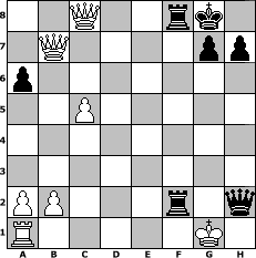 game notation in PGN-format [Event "9erD2"] [Site "www.myChess.de"] [Date "2011.09.01"] [Round "1"] [White "Joschi"] [Black "nogumo"] [ECO "C42"] [WhitemyELO "1584"] [BlackmyELO "1689"] [Result "0-1"] [TimeControl "10/3456000"] [WhiteDays "38"] [BlackDays "39"] [MyChessNo "76016"] 1. e4 e5 2. Nf3 Nf6 3. Nxe5 d6 4. Nf3 Nxe4 5. d4 d5 6. h3 Bd6 7. Be3 O-O 8. Nbd2 f5 9. c4 f4 10. Nxe4 dxe4 11. Bxf4 exf3 12. Bxd6 Qxd6 13. gxf3 Nc6 14. d5 Ne5 15. Be2 Bd7 16. Qb3 Qh6 17. c5 Rae8 18. Kf1 a6 19. Qxb7 Nxf3 20. Bxf3 Rxf3 21. d6 Bxh3+ 22. Rxh3 Qxh3+ 23. Kg1 Ref8 24. dxc7 Rxf2 25. c8=Q Qh2# 0-1 position notation in FEN-format 2Q2rk1/1Q4pp/p7/2P5/8/8/PP3r1q/R5K1 - - - 1 26 Captured white pieces: Captured black pieces: Click on a captured piece in order to display the desired move!