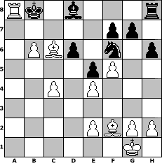 game notation in PGN-format [Event "Najdorf mit f4"] [Site "www.myChess.de"] [Date "2022.02.01"] [Round "2"] [White "larlinde"] [Black "wolni55"] [ECO "B93"] [WhitemyELO "2142"] [BlackmyELO "1373"] [Result "1-0"] [TimeControl "10/2592000"] [WhiteDays "112"] [BlackDays "115"] [MyChessNo "124511"] 1. e4 c5 2. Nf3 d6 3. d4 cxd4 4. Nxd4 Nf6 5. Nc3 a6 6. f4 e5 7. Nb3 Nc6 8. Bd3 h6 9. O-O Be6 10. f5 Bxb3 11. axb3 Nb4 12. Ra4 Nc6 13. Be3 b5 14. Nxb5 axb5 15. Bxb5 Rxa4 16. Bxc6+ Ke7 17. bxa4 Qc7 18. Bd5 Ke8 19. b4 Be7 20. b5 Qa5 21. c4 Kd7 22. Bc6+ Kc8 23. Bf2 Kb8 24. Be1 Qb6+ 25. Bf2 Qc7 26. a5 Qxa5 27. Qa1 Qxa1 28. Rxa1 Kc7 29. Ra7+ Kb8 30. b6 Bd8 31. Ra8# 1-0 position notation in FEN-format Rk1b3r/5pp1/1PBp1n1p/4pP2/2P1P3/8/4PBPP/6K1 - - - 2 31 Captured white pieces: Captured black pieces: Click on a captured piece in order to display the desired move!