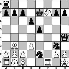 game notation in PGN-format [Event "Husarenritt"] [Site "www.myChess.de"] [Date "2005.11.23"] [Round "1"] [White "Vouivre"] [Black "MaxPayne"] [ECO "C57"] [WhitemyELO "1462"] [BlackmyELO "1561"] [Result "0-1"] [TimeControl "10/1728000"] [WhiteDays "40"] [BlackDays "33"] [MyChessNo "19959"] 1. e4 e5 2. Nf3 Nc6 3. Bc4 Nf6 4. Ng5 Bc5 5. Bxf7+ Kf8 6. Bb3 d6 7. Nf7 Bxf2+ 8. Kf1 Qe7 9. Nxh8 Bg4 10. Kxf2 Bxd1 11. Rxd1 Nxe4+ 12. Kg1 Qh4 13. Rf1+ Ke7 14. Nf7 Nd4 15. d3 Ne2+ 16. Kh1 N4g3# 0-1 position notation in FEN-format r7/ppp1kNpp/3p4/4p3/7q/1B1P2n1/PPP1n1PP/RNB2R1K - - - 3 17 Captured white pieces: Captured black pieces: Click on a captured piece in order to display the desired move!