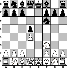 | game notation in PGN-format [Event "Schach-Cafe-Turnier 2014"] [Site "www.myChess.de"] [Date "2014.05.07"] [Round "1"] [White "loumon"] [Black "lasker"] [ECO "A04"] [WhitemyELO "1485"] [BlackmyELO "1177"] [Result "0-1"] [TimeControl "10/2592000"] [WhiteDays "00"] [BlackDays "21"] [MyChessNo "94331"] 1. Nf3 e6 2. e4 d5 3. exd5 exd5 4. d4 Nf6 0-1 position notation in FEN-format rnbqkb1r/ppp2ppp/5n2/3p4/3P4/5N2/PPP2PPP/RNBQKBNR - KQkq - 1 5 Captured white pieces:                              Captured black pieces:                               Click on a captured piece in order to display the desired move!