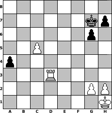 game notation in PGN-format [Event "Advents-Open 2011"] [Site "www.myChess.de"] [Date "2011.11.27"] [Round "1"] [White "Master1"] [Black "Haki"] [ECO "A40"] [WhitemyELO "1264"] [BlackmyELO "1348"] [Result "1-0"] [TimeControl "10/864000"] [WhiteDays "10"] [BlackDays "10"] [MyChessNo "77710"] 1. d4 e6 2. e3 d5 3. Bd3 Nf6 4. Nf3 Bd6 5. Nbd2 O-O 6. Qe2 a6 7. O-O Nc6 8. c3 e5 9. dxe5 Nxe5 10. e4 Nxf3+ 11. Nxf3 Qe7 12. e5 Bxe5 13. Nxe5 c5 14. Bg5 c4 15. Bc2 Bg4 16. f3 Be6 17. Bxf6 Qxf6 18. Bd1 Rac8 19. Ng4 Qg5 20. f4 Bxg4 21. Qxg4 Qe7 22. Bc2 Qe3+ 23. Kh1 Qb6 24. Qh3 g6 25. f5 Qxb2 26. fxg6 fxg6 27. Qe6+ Kh8 28. Qe5+ Kg8 29. Qxd5+ Kg7 30. Rac1 Rxf1+ 31. Rxf1 Qxc2 32. Qd7+ Kh6 33. Qxc8 Qxa2 34. Qf8+ Kh5 35. Qf3+ Kh6 36. Qh3+ Kg7 37. Qd7+ Kh6 38. Qxb7 Qe2 39. Qf7 Qd3 40. Qf4+ Kg7 41. Qd4+ Kh6 42. Qxd3 cxd3 43. Rd1 Kg7 44. c4 a5 45. c5 a4 46. Rxd3 1-0 position notation in FEN-format 8/6kp/6p1/2P5/p7/3R4/6PP/7K - - - 0 46 Captured white pieces: ![]() ![]() ![]() ![]() ![]() ![]() ![]() ![]() ![]() ![]() ![]() ![]() ![]() ![]() ![]() Captured black pieces: ![]() ![]() ![]() ![]() ![]() ![]() ![]() ![]() ![]() ![]() ![]() ![]() ![]() ![]() ![]() Click on a captured piece in order to display the desired move!