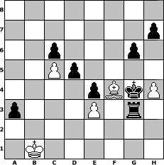 game notation in PGN-format [Event "Neujahrsturnier"] [Site "www.myChess.de"] [Date "2012.01.04"] [Round "1"] [White "Seneca"] [Black "beowulf"] [ECO "D00"] [WhitemyELO "1398"] [BlackmyELO "1383"] [Result "0-1"] [TimeControl "10/1728000"] [WhiteDays "14"] [BlackDays "19"] [MyChessNo "78945"] 1. d4 d5 2. e3 c6 3. Nf3 Bg4 4. Be2 e6 5. a3 Nd7 6. h3 Bf5 7. Nbd2 Ngf6 8. Nh4 Be4 9. Nxe4 Nxe4 10. Nf3 Ndf6 11. O-O Bd6 12. c4 O-O 13. Nd2 Rc8 14. Nxe4 Nxe4 15. Qc2 Qd7 16. c5 Bc7 17. Bd3 f5 18. b4 b6 19. Bxe4 fxe4 20. Qe2 Rf7 21. a4 e5 22. Bb2 exd4 23. Bxd4 bxc5 24. bxc5 Rcf8 25. Ra2 Bg3 26. Qd1 Bh4 27. Qe1 Rf5 28. Kh2 Qf7 29. g3 Bxg3+ 30. fxg3 Rxf1 31. Qe2 Rf2+ 32. Qxf2 Qxf2+ 33. Rxf2 Rxf2+ 34. Kg1 Ra2 35. h4 Rxa4 36. Kf1 Ra2 37. Ke1 Rg2 38. Be5 a5 39. Kd1 g6 40. Bf4 a4 41. Kc1 a3 42. Kb1 Kf7 43. Be5 Ke6 44. Bf4 Kf5 45. Ka1 Kg4 46. Kb1 Rxg3 0-1 position notation in FEN-format 8/7p/2p3p1/2Pp4/4pBkP/p3P1r1/8/1K6 - - - 0 47 Captured white pieces: ![]() ![]() ![]() ![]() ![]() ![]() ![]() ![]() ![]() ![]() ![]() ![]() ![]() ![]() ![]() Captured black pieces: ![]() ![]() ![]() ![]() ![]() ![]() ![]() ![]() ![]() ![]() ![]() ![]() ![]() ![]() ![]() Click on a captured piece in order to display the desired move!