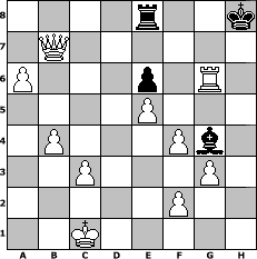 game notation in PGN-format [Event "unter uns Nr 4"] [Site "www.myChess.de"] [Date "2012.09.14"] [Round "1"] [White "borsti"] [Black "alpacino"] [ECO "A02"] [WhitemyELO "1242"] [BlackmyELO "1264"] [Result "1-0"] [TimeControl "10/864000"] [WhiteDays "10"] [BlackDays "10"] [MyChessNo "83911"] 1. f4 e6 2. e4 Nc6 3. Nf3 Bc5 4. d4 Bd6 5. e5 Bb4+ 6. Bd2 Nge7 7. Bb5 O-O 8. Bxc6 dxc6 9. Bxb4 Nd5 10. Bxf8 Qxf8 11. Qd2 b6 12. Nc3 Nxc3 13. Qxc3 Bb7 14. O-O-O g6 15. a3 Qh6 16. g3 Qf8 17. Rd3 c5 18. dxc5 bxc5 19. Rhd1 h6 20. Rd7 Rc8 21. Nd2 a6 22. Ne4 Bxe4 23. Qc4 Bf5 24. Qxa6 Kg7 25. Qc6 h5 26. Rxc7 Rb8 27. Rdd7 c4 28. Qxc4 Re8 29. b4 h4 30. a4 hxg3 31. hxg3 Kg8 32. a5 Kh8 33. Rxf7 Qxf7 34. Rxf7 Kg8 35. Rf6 Kg7 36. Qf1 Rb8 37. c3 Kg8 38. Qa6 Re8 39. Qb7 Kh8 40. a6 Bg4 41. Rxg6 1-0 position notation in FEN-format 4r2k/1Q6/P3p1R1/4P3/1P3Pb1/2P3P1/5P2/2K5 - - - 0 41 Captured white pieces: Captured black pieces: Click on a captured piece in order to display the desired move!