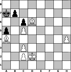 game notation in PGN-format [Event "Schach dem Nikolaus VII"] [Site "www.myChess.de"] [Date "2020.11.23"] [Round "1"] [White "beowulf"] [Black "martinus"] [ECO "A15"] [WhitemyELO "1362"] [BlackmyELO "1689"] [Result "1-0"] [TimeControl "10/2592000"] [WhiteDays "30"] [BlackDays "30"] [MyChessNo "119953"] 1. c4 Nf6 2. d4 d6 3. Nc3 g6 4. Bg5 Bg7 5. Nf3 Nbd7 6. e3 h6 7. Bf4 g5 8. Bg3 Nb6 9. Bd3 h5 10. h4 g4 11. Ng5 Nh7 12. Nxh7 e5 13. dxe5 dxe5 14. Be4 Qxd1+ 15. Rxd1 f5 16. Bd3 Rxh7 17. f3 Be6 18. fxg4 e4 19. gxf5 Bxc3+ 20. bxc3 Bxf5 21. Be2 c6 22. c5 Nd5 23. O-O Nxe3 24. Bd6 Nxf1 25. Rxf1 O-O-O 26. Rxf5 Re8 27. Rxh5 Rf7 28. Bc4 Rg7 29. Be5 Rd7 30. Be2 Rd2 31. Bg4+ Kd8 32. Bf6+ Kc7 33. Rh7+ Kb8 34. a4 e3 35. Bg5 a5 36. Re7 Rxe7 37. Bxe7 e2 38. Kf2 e1=Q+ 39. Kxe1 Rxg2 40. Bd6+ Ka7 41. Be2 Rg1+ 42. Kd2 Ra1 43. Bd1 Rxa4 44. Bxa4 1-0 position notation in FEN-format 8/kp6/2pB4/p1P5/B6P/2P5/2PK4/8 - - - 0 44 Captured white pieces: ![]() ![]() ![]() ![]() ![]() ![]() ![]() ![]() ![]() ![]() ![]() ![]() ![]() ![]() ![]() Captured black pieces: ![]() ![]() ![]() ![]() ![]() ![]() ![]() ![]() ![]() ![]() ![]() ![]() ![]() ![]() ![]() Click on a captured piece in order to display the desired move!