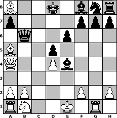 game notation in PGN-format [Event "1.Schaltjahresturnier@mySchach"] [Site "www.myChess.de"] [Date "2004.02.29"] [Round "2"] [White "Phantasos"] [Black "dennis2004"] [ECO "D11"] [WhitemyELO "1695"] [BlackmyELO "1510"] [Result "1-0"] [TimeControl "10/1728000"] [WhiteDays "39"] [BlackDays "23"] [MyChessNo "2654"] 1. d4 d5 2. c4 c6 3. Nf3 Bg4 4. Ne5 Bf5 5. cxd5 cxd5 6. e4 Bxe4 7. Bb5+ Nc6 8. Nxc6 Qb6 9. Qa4 bxc6 10. Bxc6+ Kd8 11. Bxa8 Bxg2 12. Rg1 Be4 13. Bd2 e6 14. Ba5 1-0 position notation in FEN-format B2k1bnr/p4ppp/1q2p3/B2p4/Q2Pb3/8/PP3P1P/RN2K1R1 - Q - 1 14 Captured white pieces: Captured black pieces: Click on a captured piece in order to display the desired move!