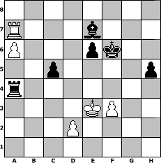 | game notation in PGN-format [Event "Winterturnier"] [Site "www.myChess.de"] [Date "2009.11.12"] [Round "1"] [White "beowulf"] [Black "Rotstift10"] [ECO "E00"] [WhitemyELO "1355"] [BlackmyELO "1557"] [Result "0-1"] [TimeControl "10/3456000"] [WhiteDays "199"] [BlackDays "180"] [MyChessNo "60575"] 1. d4 Nf6 2. c4 e6 3. a3 b6 4. Nc3 d5 5. e3 dxc4 6. Bxc4 Bb7 7. Nf3 Be7 8. O-O O-O 9. Re1 Nc6 10. e4 Na5 11. Bd3 c5 12. dxc5 bxc5 13. Bg5 h6 14. Bf4 Nc6 15. e5 Nd5 16. Nxd5 Nd4 17. Nxd4 Bxd5 18. Nf3 g5 19. Be3 Bxf3 20. gxf3 Qc7 21. f4 f5 22. Qb3 Qc6 23. Bc4 Kf7 24. Rad1 gxf4 25. Bxf4 Rg8+ 26. Kf1 Qg2+ 27. Ke2 Qe4+ 28. Be3 Qxe5 29. Rg1 f4 30. Rxg8 Rxg8 31. Rd7 fxe3 32. Qxe3 Qxb2+ 33. Kf3 Qf6+ 34. Qf4 Qxf4+ 35. Kxf4 Rg2 36. f3 Rxh2 37. Rxa7 Rh4+ 38. Ke3 Rxc4 39. a4 Kf6 40. a5 Ra4 41. a6 h5 0-1 position notation in FEN-format 8/R3b3/P3pk2/2p4p/r7/4KP2/3P4/8 - - - 0 42 Captured white pieces:                              Captured black pieces:                               Click on a captured piece in order to display the desired move!