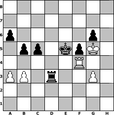 game notation in PGN-format [Event "Juni-Open (3)"] [Site "www.myChess.de"] [Date "2008.06.19"] [Round "1"] [White "MartinSilies"] [Black "nordlicht"] [ECO "C29"] [WhitemyELO "1535"] [BlackmyELO "1971"] [Result "0-1"] [TimeControl "10/1728000"] [WhiteDays "18"] [BlackDays "17"] [MyChessNo "45653"] 1. e4 e5 2. Nc3 Nf6 3. f4 d5 4. exd5 Nxd5 5. Nf3 Nxf4 6. d4 Bb4 7. Nxe5 Nd5 8. Bd2 Qh4+ 9. g3 Qxd4 10. Nf3 Nxc3 11. Nxd4 Nxd1 12. Rxd1 Bc5 13. c3 Bg4 14. Be2 Bxe2 15. Kxe2 Bxd4 16. cxd4 Nc6 17. Bc3 O-O-O 18. Rhe1 g6 19. Kf2 Rd6 20. Re3 f5 21. d5 Rhd8 22. h4 Rxd5 23. Rxd5 Rxd5 24. Re8+ Rd8 25. Re3 a6 26. Kf3 Nd4+ 27. Bxd4 Rxd4 28. b3 Kd7 29. h5 b5 30. hxg6 hxg6 31. a3 c5 32. Rc3 Kd6 33. Ke3 Rd1 34. Kf4 Kd5 35. Kg5 Kd4 36. Rf3 Rd3 37. Rf4+ Ke5 0-1 position notation in FEN-format 8/8/p5p1/1pp1kpK1/5R2/PP1r2P1/8/8 - - - 12 38 Captured white pieces: Captured black pieces: Click on a captured piece in order to display the desired move!