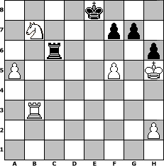 game notation in PGN-format [Event "Labourdonnais Variante 1.e4 e6 2.f4"] [Site "www.myChess.de"] [Date "2008.08.27"] [Round "2"] [White "martinus"] [Black "Rufus"] [ECO "C00"] [WhitemyELO "1915"] [BlackmyELO "1707"] [Result "1-0"] [TimeControl "10/864000"] [WhiteDays "40"] [BlackDays "40"] [MyChessNo "47556"] 1. e4 e6 2. f4 c5 3. Nf3 d5 4. exd5 exd5 5. Bb5+ Nc6 6. O-O Bd6 7. Bxc6+ bxc6 8. Re1+ Ne7 9. d4 O-O 10. Nbd2 cxd4 11. Nxd4 Bxf4 12. N2f3 Bd6 13. b3 Qb6 14. Be3 c5 15. Ne2 Bg4 16. Bf2 Bxf3 17. gxf3 Rfe8 18. Qd3 a5 19. a4 Qc7 20. Bg3 d4 21. c3 Nd5 22. cxd4 cxd4 23. Rac1 Qb8 24. Bxd6 Qxd6 25. Qxd4 Rab8 26. Ng3 Rxe1+ 27. Rxe1 Qc6 28. Nf5 Qg6+ 29. Ng3 Nb4 30. Qa7 Qd6 31. Nf5 Qd8 32. Kh1 Nd3 33. Ne7+ Kf8 34. Nc6 Ra8 35. Qb7 Qc8 36. Re7 Qxb7 37. Rxb7 Ne1 38. f4 Nd3 39. f5 h6 40. Kg2 Ke8 41. Rb5 Rc8 42. Nxa5 Rc2+ 43. Kg3 Nc5 44. Nb7 Rc3+ 45. Kg4 Nxb3 46. a5 Rc4+ 47. Kh5 Rc6 48. Rxb3 1-0 position notation in FEN-format 4k3/1N3pp1/2r4p/P4P1K/8/1R6/7P/8 - - - 0 48 Captured white pieces: Captured black pieces: Click on a captured piece in order to display the desired move!