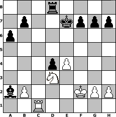 game notation in PGN-format [Event "Etwas Sizilianisch bitte??"] [Site "www.myChess.de"] [Date "2007.02.24"] [Round "1"] [White "Chaos"] [Black "kischok46"] [ECO "B20"] [WhitemyELO "1740"] [BlackmyELO "1884"] [Result "0-1"] [TimeControl "10/864000"] [WhiteDays "07"] [BlackDays "10"] [MyChessNo "32869"] 1. e4 c5 2. d4 cxd4 3. c3 dxc3 4. Nxc3 Nc6 5. Bc4 e6 6. Bf4 Nf6 7. Bd6 Bxd6 8. Qxd6 Qe7 9. Nb5 Rb8 10. f3 a6 11. Qxe7+ Kxe7 12. Nc3 Rd8 13. Nge2 d5 14. exd5 exd5 15. Bd3 Be6 16. Kf2 d4 17. Ne4 Nxe4+ 18. fxe4 Ne5 19. Nf4 Nxd3+ 20. Nxd3 Rbc8 21. Rhc1 Rxc1 22. Rxc1 Bxa2 0-1 position notation in FEN-format 3r4/1p2kppp/p7/8/3pP3/3N4/bP3KPP/2R5 - - - 0 23 Captured white pieces: Captured black pieces: Click on a captured piece in order to display the desired move!