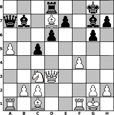game notation in PGN-format [Event "Human Brain Turnier 2014"] [Site "www.myChess.de"] [Date "2014.06.12"] [Round "1"] [White "KatharinaN"] [Black "Joschi"] [ECO "A15"] [WhitemyELO "1508"] [BlackmyELO "1531"] [Result "0-1"] [TimeControl "10/2592000"] [WhiteDays "00"] [BlackDays "90"] [MyChessNo "94775"] 1. c4 Nf6 2. d4 c5 3. d5 b5 4. cxb5 a6 5. f3 axb5 6. e4 d6 7. Bxb5+ Nbd7 8. Nc3 g6 9. f4 Bg7 10. e5 Nxd5 11. Qxd5 Rb8 12. Nf3 O-O 13. O-O Bb7 14. Qd3 Qc7 15. Ng5 Rfd8 16. e6 fxe6 17. Nxe6 Qb6 18. a4 Re8 19. Bxd7 Red8 20. Nxd8 Rxd8 21. a5 Qa7 0-1 position notation in FEN-format 3r2k1/qb1Bp1bp/3p2p1/P1p5/5P2/2NQ4/1PP3PP/R1B2RK1 - - - 1 22 Captured white pieces: Captured black pieces: Click on a captured piece in order to display the desired move!