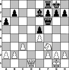 game notation in PGN-format [Event "Carpe Diem"] [Site "www.myChess.de"] [Date "2007.07.31"] [Round "1"] [White "Andylein1989"] [Black "Caligula"] [ECO "B51"] [WhitemyELO "1454"] [BlackmyELO "1681"] [Result "0-1"] [TimeControl "10/864000"] [WhiteDays "18"] [BlackDays "19"] [MyChessNo "36841"] 1. e4 c5 2. Nf3 d6 3. Bb5+ Nd7 4. c3 a6 5. Bxd7+ Bxd7 6. d4 cxd4 7. Nxd4 e5 8. O-O exd4 9. Qxd4 Ne7 10. Bf4 Nc6 11. Qd3 Qf6 12. Bg3 Be7 13. Nd2 Ne5 14. Bxe5 dxe5 15. Nf3 Rd8 16. Rad1 Ba4 17. Qe2 Rxd1 18. Rxd1 Bxd1 19. Qxd1 O-O 0-1 position notation in FEN-format 5rk1/1p2bppp/p4q2/4p3/4P3/2P2N2/PP3PPP/3Q2K1 - - - 1 20 Captured white pieces: Captured black pieces: Click on a captured piece in order to display the desired move!