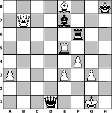 game notation in PGN-format [Event "Die Weinlese 2014 m. 50.00 Eu 1.Preis"] [Site "www.myChess.de"] [Date "2014.09.15"] [Round "1"] [White "HenrySchinasky"] [Black "Erich"] [ECO "A46"] [WhitemyELO "2115"] [BlackmyELO "2086"] [Result "1/2-1/2"] [TimeControl "10/2592000"] [WhiteDays "29"] [BlackDays "30"] [MyChessNo "95941"] 1. d4 Nf6 2. Nf3 e6 3. c4 b6 4. g3 Be7 5. Bg2 Bb7 6. Nc3 Ne4 7. Bd2 O-O 8. d5 Nxd2 9. Nxd2 d6 10. O-O e5 11. a3 Nd7 12. b4 Bg5 13. e3 a5 14. Qe2 g6 15. Nb5 f5 16. Nb3 Bc8 17. Qc2 a4 18. Nc1 e4 19. Ne2 Ne5 20. Nf4 Qe7 21. Rfd1 Bf6 22. Rac1 g5 23. Ne2 h5 24. Ned4 h4 25. c5 bxc5 26. bxc5 Qh7 27. cxd6 cxd6 28. Nxd6 hxg3 29. hxg3 Ba6 30. Nxe4 fxe4 31. Bxe4 Qh3 32. Bf5 g4 33. Qe4 Qh5 34. Rc7 Bc8 35. Bh7+ Kh8 36. d6 Bd7 37. Rxd7 Nxd7 38. Bg6 Qh6 39. Nc6 Nc5 40. Qc2 Nd7 41. Bf5 Ne5 42. Nxe5 Bxe5 43. Bxg4 Bxd6 44. Rd5 Kg7 45. f4 Rae8 46. Qxa4 Be7 47. Qd7 Qb6 48. Rg5+ Kh8 49. Re5 Qd6 50. Qb7 Rf6 51. Bh5 Qd8 52. Bxe8 Qd1+ 1/2-1/2 position notation in FEN-format 4B2k/1Q2b3/5r2/4R3/5P2/P3P1P1/8/3q2K1 - - - 1 53 Captured white pieces: Captured black pieces: Click on a captured piece in order to display the desired move!