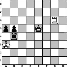 game notation in PGN-format [Event "mySchachR5 (1600-1900)"] [Site "www.myChess.de"] [Date "2009.07.10"] [Round "1"] [White "Andylein1989"] [Black "Plaidroller"] [ECO "B10"] [WhitemyELO "1626"] [BlackmyELO "1808"] [Result "0-1"] [TimeControl "10/1728000"] [WhiteDays "00"] [BlackDays "14"] [MyChessNo "57354"] 1. e4 c6 2. Nf3 d5 3. exd5 cxd5 4. d4 Nf6 5. Bd3 Bg4 6. h4 Nc6 7. Nc3 Nxd4 8. Be2 Nxe2 9. Qxe2 Bxf3 10. Qxf3 e6 11. Bg5 Be7 12. O-O O-O 13. Ne2 Ne4 14. Bxe7 Qxe7 15. g3 Nd2 16. Qe3 Nxf1 17. Rxf1 Qb4 18. Qb3 Qxb3 19. axb3 Rac8 20. c3 e5 21. Rd1 Rfd8 22. Kg2 f5 23. f4 e4 24. Nd4 g6 25. Kf2 Kf7 26. Ke3 Kf6 27. Ra1 a6 28. Ra5 Rd6 29. Nc2 h6 30. Kd4 g5 31. Ne3 gxf4 32. gxf4 Ke6 33. h5 Rg8 34. Rc5 Rg3 35. Rc8 Rh3 36. Re8+ Kf7 37. Re5 Rxh5 38. Nxf5 Rf6 39. Nd6+ Kg6 40. f5+ Rhxf5 41. Nxf5 Rxf5 42. Re8 h5 43. c4 dxc4 44. bxc4 h4 45. Rg8+ Kh7 46. Rg1 Kh6 47. Kxe4 Rf2 48. b4 Rb2 49. Kf5 Rxb4 50. Rg6+ Kh7 51. Rg4 h3 52. Rh4+ Kg7 53. Rxh3 Rxc4 54. Rg3+ Kf7 55. Ke5 b5 56. Ra3 Rc6 57. Kd5 Rh6 58. Kc5 Ke7 59. Rg3 Rf6 60. Rg7+ Rf7 61. Rg3 Rf6 62. Rg7+ Ke6 63. Ra7 Ke5 64. Kb4 Kd5 65. Ra8 Rf4+ 66. Kb3 Ra4 67. Rg8 Kc5 68. Rg6 Ra1 69. Kb2 Ra4 70. Kb3 Rb4+ 71. Ka3 a5 72. Rg5+ Kd6 73. Rg6+ Ke5 0-1 position notation in FEN-format 8/8/6R1/pp2k3/1r6/K7/8/8 - - - 4 74 Captured white pieces: Captured black pieces: Click on a captured piece in order to display the desired move!