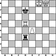 game notation in PGN-format [Event "Saphir"] [Site "www.myChess.de"] [Date "2021.05.11"] [Round "1"] [White "beowulf"] [Black "Master1"] [ECO "A36"] [WhitemyELO "1404"] [BlackmyELO "1273"] [Result "1-0"] [TimeControl "10/864000"] [WhiteDays "87"] [BlackDays "76"] [MyChessNo "122194"] 1. c4 c5 2. Nc3 Nc6 3. g3 Nf6 4. Bg2 e6 5. d3 d5 6. Bg5 Be7 7. Nf3 O-O 8. O-O d4 9. Nb5 a6 10. Na3 h6 11. Bf4 Bd6 12. Qd2 b6 13. Nc2 e5 14. Bxh6 Ng4 15. Bg5 Be7 16. Bxe7 Qxe7 17. e3 dxe3 18. Nxe3 Rb8 19. Nd5 Qd8 20. Rfe1 Be6 21. Nc3 Re8 22. Ne4 a5 23. h3 Nd4 24. hxg4 Bxg4 25. Nxd4 cxd4 26. f3 Bf5 27. g4 Bh7 28. Kf2 a4 29. a3 Bxe4 30. fxe4 Qf6+ 31. Ke2 Qh4 32. Bf3 Qh2+ 33. Kd1 Qxd2+ 34. Kxd2 g5 35. Rh1 b5 36. Rh5 f6 37. Rah1 Kf7 38. Rh7+ Ke6 39. R1h6 Re7 40. Rxe7+ Kxe7 41. Rh7+ Kd6 42. Rf7 Ke6 43. Rc7 b4 44. axb4 Rxb4 45. Rc6+ Ke7 46. Kc2 Rb7 47. Bd1 Ra7 48. Kc1 a3 49. bxa3 Rxa3 50. Bc2 Ra1+ 51. Kd2 Rg1 52. Bd1 Rg2+ 53. Ke1 Rg1+ 54. Kd2 Rg2+ 55. Kc1 Rg3 56. Be2 Rg1+ 57. Kd2 Rg2 58. c5 Rh2 59. Ra6 Rh8 60. Bd1 Rc8 61. c6 Kd6 62. Ba4 Kc7 63. Ra7+ Kb6 64. Rf7 Ka5 65. Rxf6 Kxa4 66. Re6 Kb5 67. Rxe5+ Kxc6 68. Rxg5 Rd8 69. Rf5 Rg8 70. g5 Kd6 71. Ke2 Ke6 72. Kf3 Rg6 73. Kf4 Rg8 74. Rd5 Rf8+ 75. Kg4 Rf1 76. Rxd4 Rg1+ 77. Kh5 Ke5 78. Rd5+ Ke6 79. Kh6 Rh1+ 80. Kg7 Rg1 81. g6 Rg3 82. Kh7 Kf6 83. Rf5+ Ke6 84. g7 Rh3+ 85. Kg8 Rg3 86. Kf8 Rxd3 87. g8=Q+ Kd7 88. Rd5+ 1-0 position notation in FEN-format 5KQ1/3k4/8/3R4/4P3/3r4/8/8 - - - 2 88 Captured white pieces: Captured black pieces: Click on a captured piece in order to display the desired move!