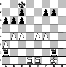 game notation in PGN-format [Event "Wrixum - Open die XI"] [Site "www.myChess.de"] [Date "2013.08.09"] [Round "1"] [White "Seneca"] [Black "mattse"] [ECO "C68"] [WhitemyELO "1538"] [BlackmyELO "1645"] [Result "1/2-1/2"] [TimeControl "10/2592000"] [WhiteDays "30"] [BlackDays "30"] [MyChessNo "89626"] 1. e4 e5 2. Nf3 Nc6 3. Bb5 a6 4. Bxc6 dxc6 5. O-O Bg4 6. d3 Qf6 7. Nbd2 Ne7 8. h3 h5 9. Re1 Ng6 10. d4 Bd6 11. c4 Bb4 12. dxe5 Qe7 13. a3 Bxd2 14. Bxd2 O-O-O 15. hxg4 hxg4 16. Ng5 Nxe5 17. Qe2 Qf6 18. f4 gxf3 19. Nxf3 Nxf3+ 20. Qxf3 Qxf3 21. gxf3 Rxd2 22. b4 Rhh2 23. f4 Rdg2+ 24. Kf1 Rc2 25. Kg1 Rhg2+ 26. Kh1 Rh2+ 27. Kg1 Rcg2+ 28. Kf1 b6 29. Rad1 Ra2 30. Kg1 Rhg2+ 1/2-1/2 position notation in FEN-format 2k5/2p2pp1/ppp5/8/1PP1PP2/P7/r5r1/3RR1K1 - - - 4 31 Captured white pieces: Captured black pieces: Click on a captured piece in order to display the desired move!
