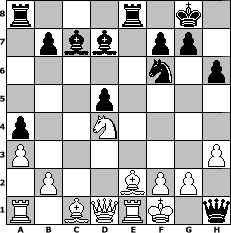 game notation in PGN-format [Event "Drachenboote auf dem Rhein"] [Site "www.myChess.de"] [Date "2009.07.15"] [Round "1"] [White "hape50"] [Black "neve"] [ECO "B01"] [WhitemyELO "1384"] [BlackmyELO "1516"] [Result "0-1"] [TimeControl "10/1728000"] [WhiteDays "20"] [BlackDays "20"] [MyChessNo "57470"] 1. e4 d5 2. exd5 Nf6 3. c4 c6 4. d3 cxd5 5. d4 Nc6 6. c5 e5 7. h3 exd4 8. Nf3 Bxc5 9. Bd3 O-O 10. Ng5 Re8+ 11. Be2 Bf5 12. O-O h6 13. Nf3 Nb4 14. Bb5 Bd7 15. Be2 Nc6 16. a3 a5 17. Nbd2 Qe7 18. Nb3 Bb6 19. Re1 Qd6 20. Nfxd4 Bc7 21. Nf3 a4 22. Nbd4 Nxd4 23. Nxd4 Qh2+ 24. Kf1 Qh1# 0-1 position notation in FEN-format r3r1k1/1pbb1pp1/5n1p/3p4/p2N4/P6P/1P2BPP1/R1BQRK1q - - - 3 25 Captured white pieces: Captured black pieces: Click on a captured piece in order to display the desired move!