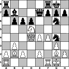 game notation in PGN-format [Event "Die Wikinger XXI Finale"] [Site "www.myChess.de"] [Date "2025.11.25"] [Round "1"] [White "jeremyt"] [Black "Seneca"] [ECO "C41"] [WhitemyELO "2131"] [BlackmyELO "1553"] [Result "1-0"] [TimeControl "10/2592000"] [WhiteDays "51"] [BlackDays "54"] [MyChessNo "133981"] 1. e4 e5 2. Nf3 d6 3. g3 Be7 4. Bg2 Nf6 5. Nc3 O-O 6. O-O c6 7. d4 exd4 8. Nxd4 Nbd7 9. Nf5 Ne5 10. Nxe7+ Qxe7 11. f4 Ng6 12. Qd4 b6 13. b3 Bb7 14. Bb2 Ng4 15. Nd5 1-0 position notation in FEN-format r4rk1/pb2qppp/1ppp2n1/3N4/3QPPn1/1P4P1/PBP1P1BP/R4RK1 - - - 4 15 Captured white pieces: Captured black pieces: Click on a captured piece in order to display the desired move!
