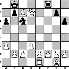| game notation in PGN-format [Event "Mail"] [Site "www.myChess.de"] [Date "2012.05.01"] [Round "1"] [White "Winston"] [Black "fred521"] [ECO "C44"] [WhitemyELO "1478"] [BlackmyELO "1313"] [Result "1-0"] [TimeControl "10/864000"] [WhiteDays "10"] [BlackDays "10"] [MyChessNo "81396"] 1. e4 e5 2. Nf3 Nc6 3. a3 Nf6 4. Nc3 d5 5. exd5 Nxd5 6. Bc4 Be6 7. Bxd5 Bxd5 8. Nxd5 Qxd5 9. d3 O-O-O 10. O-O e4 11. Ng5 f5 12. Re1 Re8 13. Bf4 h6 14. Qh5 Bc5 15. Nxe4 Qd4 16. Qxf5+ Kb8 17. Nxc5 Rhf8 18. Nd7+ Qxd7 19. Qxd7 Rxe1+ 20. Rxe1 a6 21. Bxc7+ 1-0 position notation in FEN-format 1k3r2/1pBQ2p1/p1n4p/8/8/P2P4/1PP1PPPP/4R1K1 - - - 0 21 Captured white pieces:                              Captured black pieces:                               Click on a captured piece in order to display the desired move!