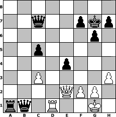 game notation in PGN-format [Event "F"] [Site "www.myChess.de"] [Date "2017.08.16"] [Round "1"] [White "Joschi"] [Black "Grubengeist"] [ECO "B08"] [WhitemyELO "1628"] [BlackmyELO "2004"] [Result "0-1"] [TimeControl "10/2592000"] [WhiteDays "120"] [BlackDays "120"] [MyChessNo "109181"] 1. e4 d6 2. d4 Nf6 3. Nc3 g6 4. Nf3 Bg7 5. Be2 c6 6. O-O O-O 7. Re1 Re8 8. h3 b5 9. a3 Nbd7 10. Be3 Qc7 11. Qd2 Bb7 12. Bh6 e5 13. Bxg7 Kxg7 14. dxe5 dxe5 15. Rad1 a5 16. Qe3 Rad8 17. Rd2 b4 18. axb4 axb4 19. Na4 c5 20. c3 Nxe4 21. Rdd1 Bc6 22. b3 Bxa4 23. Qxe4 Bxb3 24. Rb1 Nf6 25. Qh4 e4 26. Nh2 Bc2 27. Rbc1 b3 28. Bd1 Bxd1 29. Rexd1 b2 30. Rb1 Rxd1+ 31. Rxd1 Ra8 32. Ng4 Nxg4 33. Qxg4 Ra1 34. Qe2 b1=Q 0-1 position notation in FEN-format 8/2q2pkp/6p1/2p5/4p3/2P4P/4QPP1/rq1R2K1 - - - 0 35 Captured white pieces: Captured black pieces: Click on a captured piece in order to display the desired move!