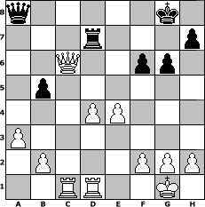 game notation in PGN-format [Event "M"] [Site "www.myChess.de"] [Date "2017.03.24"] [Round "1"] [White "miu"] [Black "Knight"] [ECO "D00"] [WhitemyELO "1507"] [BlackmyELO "1180"] [Result "1-0"] [TimeControl "10/1728000"] [WhiteDays "58"] [BlackDays "60"] [MyChessNo "107511"] 1. d4 d5 2. e3 Nf6 3. Nf3 Nc6 4. c4 dxc4 5. Bxc4 e6 6. a3 Bd6 7. Nc3 O-O 8. O-O a6 9. Bd2 b5 10. Ba2 Re8 11. Rc1 e5 12. Nd5 Nxd5 13. Bxd5 Be6 14. Bxc6 e4 15. Bxe4 Bg4 16. Qc2 g6 17. Bxa8 Qxa8 18. Qc6 Qc8 19. Ne1 Bd7 20. Qc2 a5 21. Bxa5 c6 22. Nd3 Qa8 23. Bb4 Be7 24. Bxe7 Rxe7 25. Ne5 Bf5 26. e4 Bd7 27. Nxd7 Rxd7 28. Rfd1 f6 29. Qxc6 1-0 position notation in FEN-format q5k1/3r3p/2Q2pp1/1p6/3PP3/P7/1P3PPP/2RR2K1 - - - 0 29 Captured white pieces: Captured black pieces: Click on a captured piece in order to display the desired move!