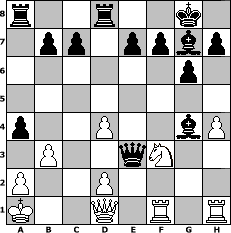 game notation in PGN-format [Event "LISA OPEN #1"] [Site "www.myChess.de"] [Date "2017.09.02"] [Round "1"] [White "Knight"] [Black "lisama"] [ECO "D00"] [WhitemyELO "1206"] [BlackmyELO "1502"] [Result "0-1"] [TimeControl "10/1728000"] [WhiteDays "20"] [BlackDays "20"] [MyChessNo "109425"] 1. d4 d5 2. e4 dxe4 3. Nc3 Nf6 4. f3 exf3 5. Qxf3 Qxd4 6. Be3 Qd8 7. Bd3 Nc6 8. h3 Ne5 9. Qe2 Nxd3+ 10. cxd3 g6 11. O-O-O Bg7 12. Nf3 Nd5 13. Nxd5 Qxd5 14. Kb1 O-O 15. g4 Rd8 16. d4 a5 17. h4 Be6 18. b3 Bxg4 19. Rdf1 a4 20. Qd1 Qe4+ 21. Ka1 Qxe3 0-1 position notation in FEN-format r2r2k1/1pp1ppbp/6p1/8/p2P2bP/1P2qN2/P2P4/K2Q1R1R - - - 0 22 Captured white pieces: Captured black pieces: Click on a captured piece in order to display the desired move!