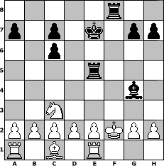 game notation in PGN-format [Event "Husarenritt"] [Site "www.myChess.de"] [Date "2005.11.23"] [Round "2"] [White "Vouivre"] [Black "Knight"] [ECO "C57"] [WhitemyELO "1462"] [BlackmyELO "1399"] [Result "0-1"] [TimeControl "10/1728000"] [WhiteDays "39"] [BlackDays "37"] [MyChessNo "19976"] 1. e4 e5 2. Nf3 Nc6 3. Bc4 Nf6 4. Ng5 Bc5 5. Bxf7+ Kf8 6. Bb3 d5 7. exd5 Nxd5 8. Qf3+ Qf6 9. Bxd5 Qxf3 10. Nxf3 Bg4 11. Bxc6 bxc6 12. Nxe5 Re8 13. f4 Bd4 14. Nc3 Bxe5 15. fxe5 Rxe5+ 16. Kf2 Ke7 17. Re1 Rf8+ 0-1 position notation in FEN-format 5r2/p1p1k1pp/2p5/4r3/6b1/2N5/PPPPPKPP/R1B1R3 - - - 4 18 Captured white pieces: Captured black pieces: Click on a captured piece in order to display the desired move!
