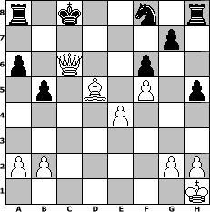 | game notation in PGN-format [Event "Mail"] [Site "www.myChess.de"] [Date "2012.05.01"] [Round "1"] [White "BobbyF4"] [Black "Winston"] [ECO "B20"] [WhitemyELO "1482"] [BlackmyELO "1478"] [Result "1-0"] [TimeControl "10/864000"] [WhiteDays "10"] [BlackDays "10"] [MyChessNo "81381"] 1. e4 c5 2. d4 cxd4 3. c3 dxc3 4. Nxc3 a6 5. Bc4 e6 6. Qe2 Nc6 7. Nf3 b5 8. Bb3 Bb4 9. O-O h6 10. Rd1 Nge7 11. Nh4 Ne5 12. f4 Bc5+ 13. Kh1 N5g6 14. Nxg6 Nxg6 15. f5 Nf8 16. Bf4 d6 17. Rd2 e5 18. Bxe5 f6 19. Qh5+ Kd7 20. Bxd6 Bxd6 21. Rad1 Kc7 22. Rxd6 Qxd6 23. Rxd6 Kxd6 24. Qd1+ Kc7 25. Qd5 Bb7 26. Qc5+ Kb8 27. Nd5 Bxd5 28. Bxd5 h5 29. Qd6+ Kc8 30. Qc6+ 1-0 position notation in FEN-format r1k2n1r/6p1/p1Q2p2/1p1B1P1p/4P3/8/PP4PP/7K - - - 3 30 Captured white pieces:                              Captured black pieces:                               Click on a captured piece in order to display the desired move!