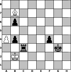 game notation in PGN-format [Event "Ohne techn. Hilfsmittel..."] [Site "www.myChess.de"] [Date "2013.02.13"] [Round "1"] [White "Joschi"] [Black "sprinterde"] [ECO "C41"] [WhitemyELO "1565"] [BlackmyELO "1686"] [Result "0-1"] [TimeControl "10/864000"] [WhiteDays "60"] [BlackDays "60"] [MyChessNo "86554"] 1. e4 e5 2. Nf3 d6 3. Bc4 Bg4 4. c3 Qf6 5. d4 Bxf3 6. Qxf3 Qxf3 7. gxf3 Nd7 8. Be3 Be7 9. Nd2 Nb6 10. Bb3 a5 11. a4 Nf6 12. f4 exf4 13. Bxf4 O-O 14. f3 Nh5 15. Be3 Bh4+ 16. Ke2 Rfe8 17. Rhg1 Bd8 18. Rg2 Bf6 19. Rag1 Rad8 20. Kd1 g6 21. Kc1 d5 22. e5 Be7 23. f4 Ng7 24. Bc2 f5 25. Nf3 Nc4 26. Bf2 Kf7 27. Ng5+ Bxg5 28. fxg5 Ne6 29. h4 Nf4 30. Bg3 Nxg2 31. Rxg2 Ne3 32. Rh2 Nf1 33. Rg2 Nxg3 34. Rxg3 c5 35. h5 Rd7 36. hxg6+ Kxg6 37. Kd2 cxd4 38. cxd4 Rc8 39. Rf3 Rf7 40. Bb3 Kxg5 41. Bxd5 Rd7 42. Be6 Rxd4+ 43. Ke3 Re4+ 44. Kd3 Rd8+ 45. Kc3 Rxe5 46. Bf7 Rc5+ 47. Kb3 Kg4 48. Rf1 Rd3+ 49. Ka2 h5 50. Rg1+ Rg3 51. Bxh5+ Kh4 52. Rh1+ Rh3 53. Rxh3+ Kxh3 54. Bf3 b6 55. Ka3 f4 56. Bb7 Kg3 57. b4 Rc3+ 58. Kb2 axb4 0-1 position notation in FEN-format 8/1B6/1p6/8/Pp3p2/2r3k1/1K6/8 - - - 0 59 Captured white pieces: Captured black pieces: Click on a captured piece in order to display the desired move!