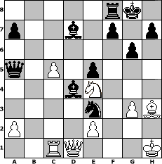 game notation in PGN-format [Event "1.Brefelder Open"] [Site "www.myChess.de"] [Date "2014.10.20"] [Round "1"] [White "alibengali"] [Black "Helmut48"] [ECO "B20"] [WhitemyELO "1609"] [BlackmyELO "1975"] [Result "0-1"] [TimeControl "10/2592000"] [WhiteDays "107"] [BlackDays "089"] [MyChessNo "96419"] 1. e4 c5 2. g3 Nc6 3. Bg2 Nf6 4. f4 d6 5. Nc3 g6 6. d3 Bg7 7. Nf3 O-O 8. O-O Be6 9. Ng5 Bg4 10. Bf3 Bd7 11. e5 dxe5 12. fxe5 Nxe5 13. Bxb7 Rb8 14. Bg2 Nc6 15. Bf4 Rxb2 16. Na4 Rb5 17. c4 Ra5 18. Rb1 Ng4 19. Bd2 Bd4+ 20. Kh1 Nce5 21. Bxa5 Qxa5 22. Nxc5 Qxc5 23. Ne4 Qa5 24. Qb3 Nxh2 25. Rfc1 Nxd3 26. c5 Nxc1 27. Rxc1 Ng4 28. Qd1 e5 29. Bh3 Ne3 0-1 position notation in FEN-format 5rk1/p2b1p1p/6p1/q1P1p3/3bN3/4n1PB/P3P3/2RQ3K - - - 2 30 Captured white pieces: ![]() ![]() ![]() ![]() ![]() ![]() ![]() ![]() ![]() ![]() ![]() ![]() ![]() ![]() ![]() Captured black pieces: ![]() ![]() ![]() ![]() ![]() ![]() ![]() ![]() ![]() ![]() ![]() ![]() ![]() ![]() ![]() Click on a captured piece in order to display the desired move!