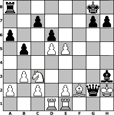 game notation in PGN-format [Event "> 1500"] [Site "www.myChess.de"] [Date "2010.03.18"] [Round "1"] [White "gunni50"] [Black "rux"] [ECO "B00"] [WhitemyELO "1307"] [BlackmyELO "1460"] [Result "0-1"] [TimeControl "10/2592000"] [WhiteDays "89"] [BlackDays "90"] [MyChessNo "64064"] 1. e4 Nc6 2. Nf3 e5 3. Bc4 Be7 4. O-O Nf6 5. Nc3 d6 6. h3 a6 7. d4 exd4 8. Nxd4 Nxd4 9. Be3 Ne6 10. b3 b5 11. Bxe6 fxe6 12. Qf3 O-O 13. Rad1 Nd5 14. exd5 Rxf3 15. gxf3 e5 16. f4 Bxh3 17. Rfe1 Bh4 18. fxe5 Bxf2+ 19. Bxf2 Qg5+ 20. Kh2 Qg2# 0-1 position notation in FEN-format r5k1/2p3pp/p2p4/1p1PP3/8/1PN4b/P1P1PBqK/3RR3 - - - 3 21 Captured white pieces: Captured black pieces: Click on a captured piece in order to display the desired move!