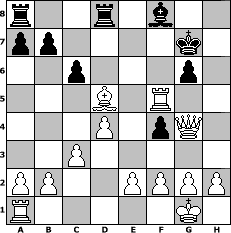 game notation in PGN-format [Event "Osterei 2015"] [Site "www.myChess.de"] [Date "2015.04.05"] [Round "1"] [White "kalle"] [Black "lotchi"] [ECO "C50"] [WhitemyELO "1612"] [BlackmyELO "1204"] [Result "1-0"] [TimeControl "10/2592000"] [WhiteDays "73"] [BlackDays "60"] [MyChessNo "98856"] 1. e4 e5 2. Nf3 Nc6 3. Bc4 h6 4. O-O Nf6 5. d4 d5 6. exd5 Nxd5 7. Re1 Bb4 8. c3 Be7 9. Nxe5 Nxe5 10. Rxe5 c6 11. Nd2 g6 12. Nf3 O-O 13. Bxh6 Re8 14. Qd2 f6 15. Qd3 Kh7 16. Nh4 f5 17. Qh3 f4 18. Nf5 Bf8 19. Bg5+ Kg8 20. Bxd8 Rxd8 21. Qg4 Bxf5 22. Rxf5 Kg7 23. Bxd5 1-0 position notation in FEN-format r2r1b2/pp4k1/2p3p1/3B1R2/3P1pQ1/2P5/PP2PPPP/R5K1 - - - 0 23 Captured white pieces: Captured black pieces: Click on a captured piece in order to display the desired move!