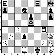 game notation in PGN-format [Event "André Chéron - 30. Todestag"] [Site "www.myChess.de"] [Date "2010.09.12"] [Round "1"] [White "Haki"] [Black "martinus"] [ECO "B33"] [WhitemyELO "1320"] [BlackmyELO "1771"] [Result "0-1"] [TimeControl "10/1728000"] [WhiteDays "80"] [BlackDays "76"] [MyChessNo "68256"] 1. e4 c5 2. Nf3 Nc6 3. d4 cxd4 4. Nxd4 Nf6 5. Nc3 e6 6. Bg5 Be7 7. Be3 O-O 8. Nxc6 bxc6 9. Bd3 d5 10. e5 Nd7 11. O-O Nxe5 12. Be2 c5 13. Na4 d4 14. Bd2 Bb7 15. f4 Ng6 16. c3 d3 17. Bf3 Bxf3 18. Qxf3 c4 19. b3 Qd7 20. f5 Ne5 21. Qg3 Bf6 22. Nc5 Qc6 23. Bh6 Qxc5+ 24. Kh1 Kh8 25. Rf4 gxh6 26. fxe6 fxe6 27. Raf1 Nd7 28. Rxc4 Qg5 29. Rg4 Qd5 30. c4 Qh5 31. Rd1 Be5 32. Qh4 Qf5 33. Qh3 Qf1+ 0-1 position notation in FEN-format r4r1k/p2n3p/4p2p/4b3/2P3R1/1P1p3Q/P5PP/3R1q1K - - - 7 34 Captured white pieces: Captured black pieces: Click on a captured piece in order to display the desired move!