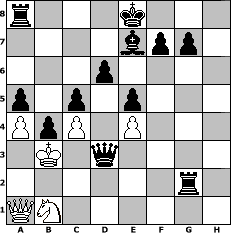 game notation in PGN-format [Event "Adventszeit"] [Site "www.myChess.de"] [Date "2022.11.28"] [Round "1"] [White "Andreas1954"] [Black "Seneca"] [ECO "B07"] [WhitemyELO "1321"] [BlackmyELO "1503"] [Result "0-1"] [TimeControl "10/1728000"] [WhiteDays "20"] [BlackDays "18"] [MyChessNo "128252"] 1. e4 d6 2. d3 Nf6 3. Bg5 e5 4. Bxf6 Qxf6 5. Nc3 Be7 6. f3 c6 7. g4 Qh4+ 8. Ke2 b5 9. a4 b4 10. Nb1 a5 11. b3 c5 12. c4 Nc6 13. Qd2 Nd4+ 14. Kd1 Nxb3 15. Qb2 Nxa1 16. Qxa1 Qf6 17. h4 h6 18. g5 hxg5 19. h5 g4 20. Rh2 gxf3 21. Rf2 Rxh5 22. Rxf3 Bg4 23. Be2 Bxf3 24. Bxf3 Rg5 25. Ne2 Qxf3 26. Kd2 Rg2 27. Kc2 Qxe2+ 28. Kb3 Qxd3+ 0-1 position notation in FEN-format r3k3/4bpp1/3p4/p1p1p3/PpP1P3/1K1q4/6r1/QN6 - q - 0 29 Captured white pieces: Captured black pieces: Click on a captured piece in order to display the desired move!