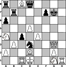 game notation in PGN-format [Event "Olympische Sommerspiele 2016"] [Site "www.myChess.de"] [Date "2016.08.05"] [Round "1"] [White "Robur"] [Black "Geisterreiter"] [ECO "D06"] [WhitemyELO "1842"] [BlackmyELO "1362"] [Result "1-0"] [TimeControl "10/2592000"] [WhiteDays "25"] [BlackDays "23"] [MyChessNo "104420"] 1. d4 d5 2. c4 Bf5 3. Nc3 Nf6 4. e3 a6 5. cxd5 h6 6. Qb3 e6 7. Qxb7 Nbd7 8. dxe6 Bxe6 9. e4 c5 10. d5 Bg4 11. f3 Bd6 12. fxg4 O-O 13. g5 Ng4 14. Be2 Nxh2 15. gxh6 Bg3+ 16. Kd1 Ne5 17. hxg7 Re8 18. Be3 Re7 19. Qb3 Rb8 20. Qc2 Reb7 21. b3 Qa5 22. Rc1 Kxg7 23. Bd2 Ra8 24. Na4 Qd8 25. Qc3 c4 26. Qxg3+ Nhg4 27. Bxg4 Nd3 28. Bc8+ 1-0 position notation in FEN-format r1Bq4/1r3pk1/p7/3P4/N1p1P3/1P1n2Q1/P2B2P1/2RK2NR - - - 2 28 Captured white pieces: Captured black pieces: Click on a captured piece in order to display the desired move!